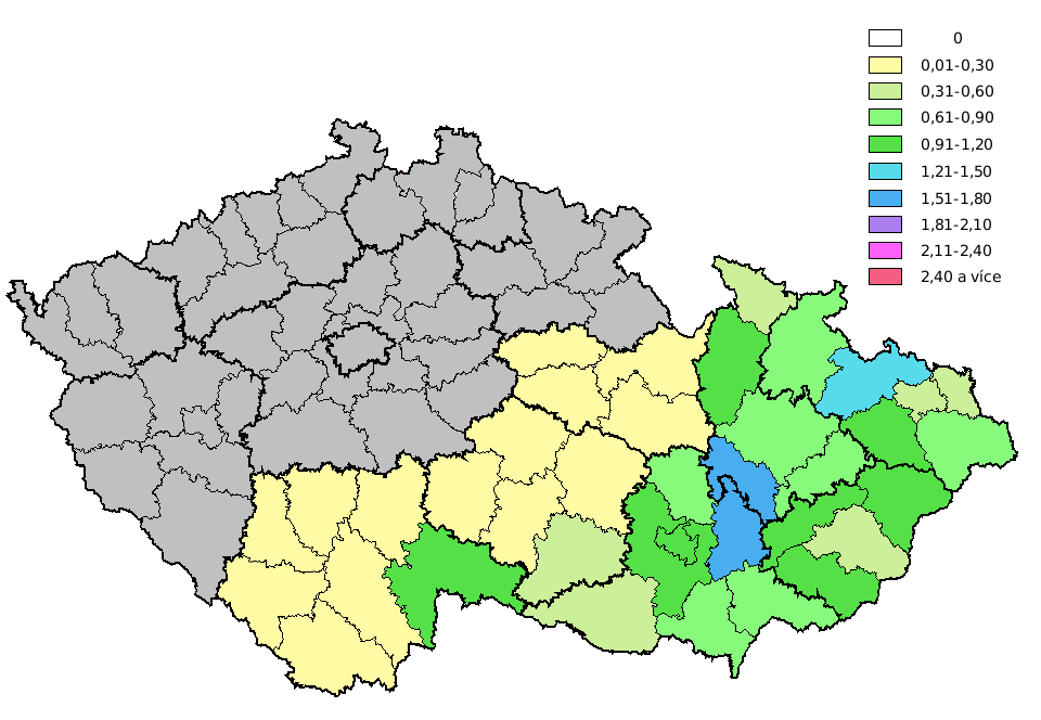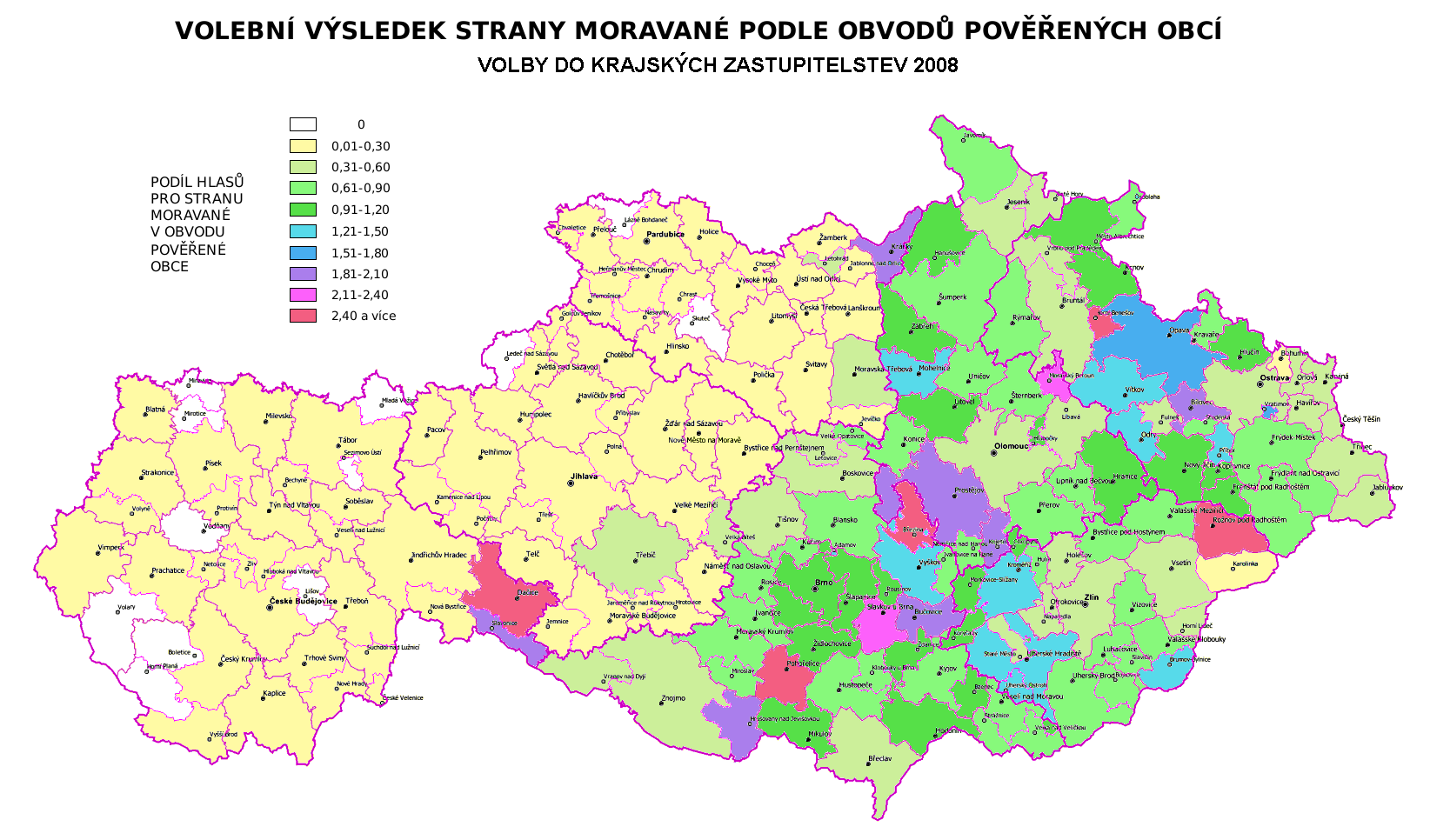 Struktura území ČR - seznam obcí ČR doplněný o příslušnost k historickým zemím. |
